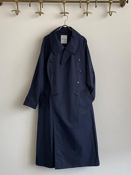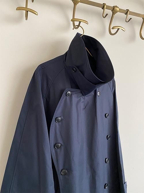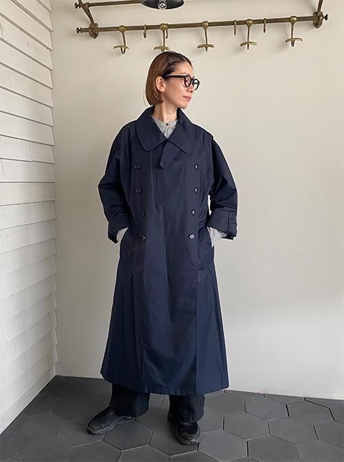 フランス軍のモーターサイクルコートをベースにロングコートにアレンジされたダブルブレストコートは存在感のあるマニッシュな印象。