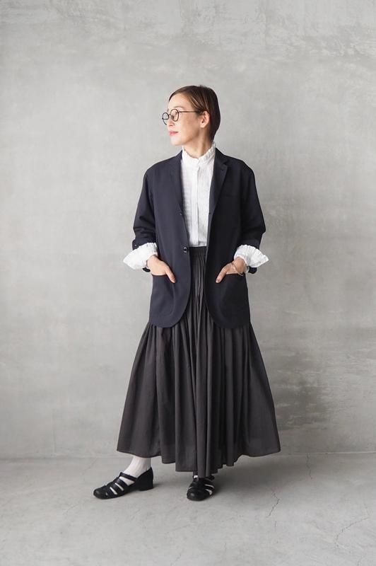 フロント裾は着用時のバランスを考慮し丸みを持たせた上品なカッティング、袖口はカフス仕様、バックはセンターベンツ。