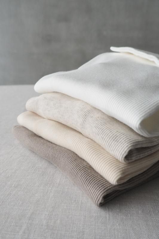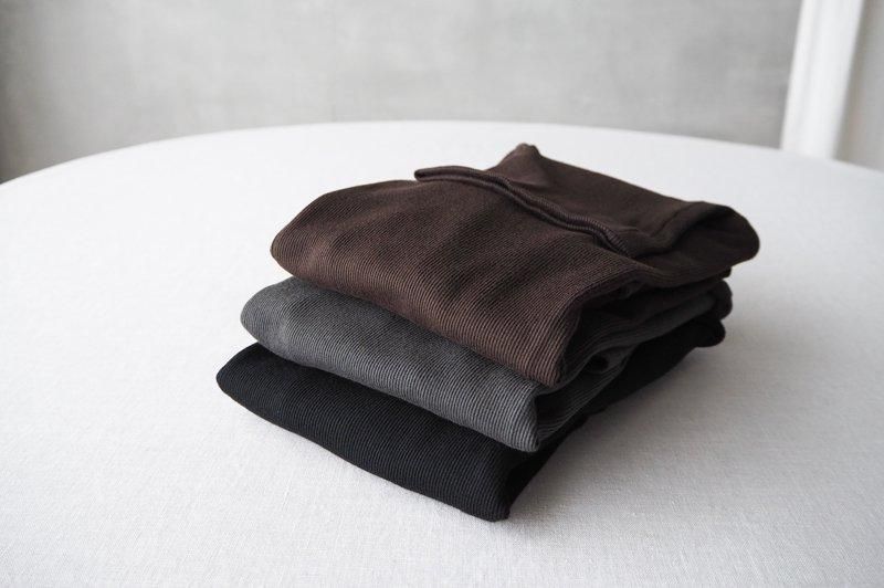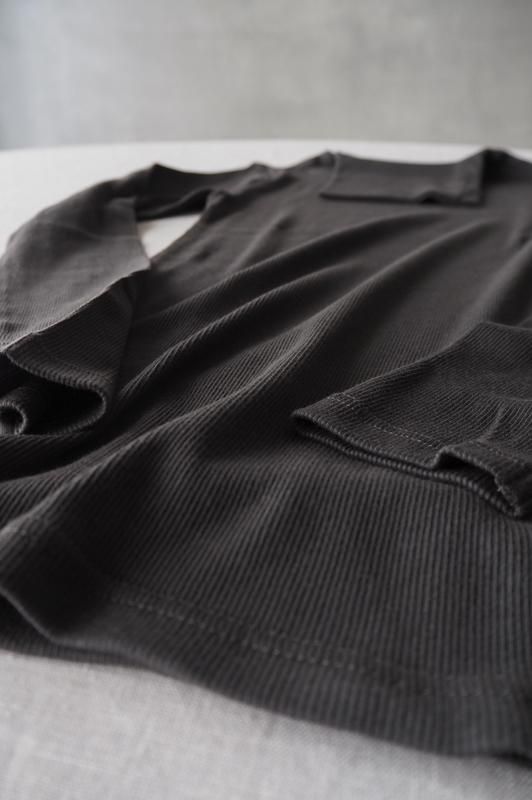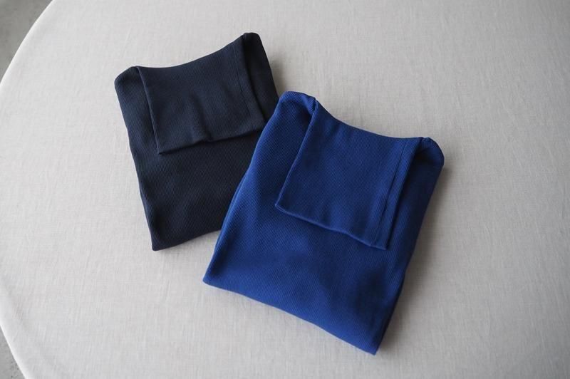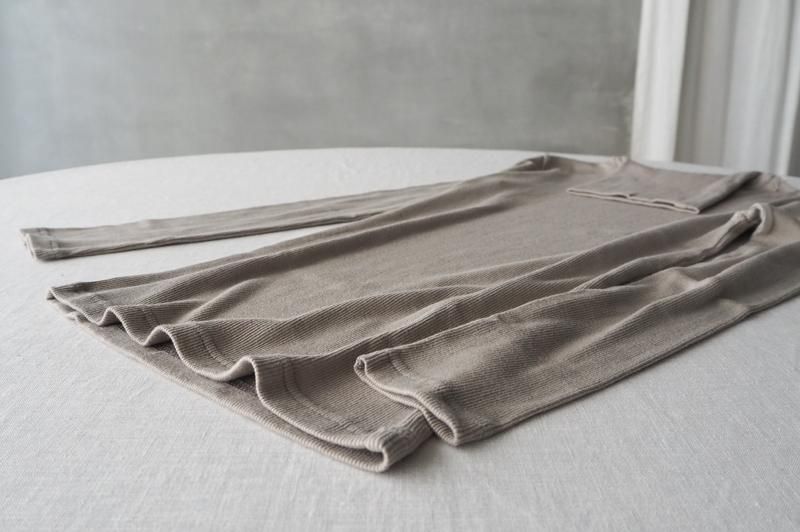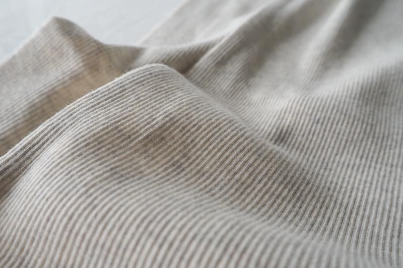 テレコ編みの生地はリブ編みよりもソフトな伸縮性を持ち、体に馴染むやさしい着心地が特徴です。