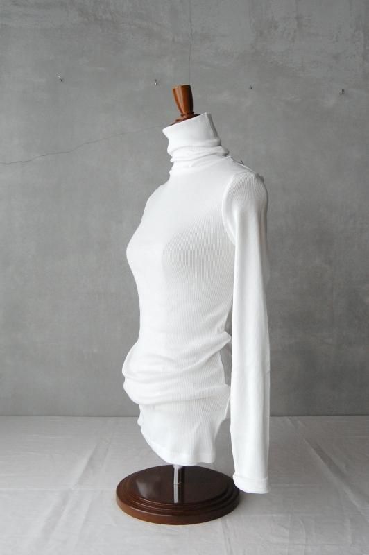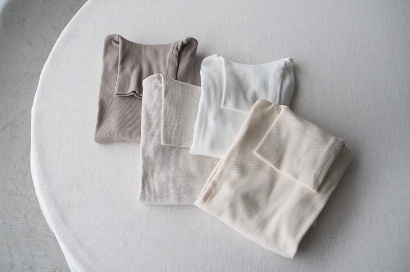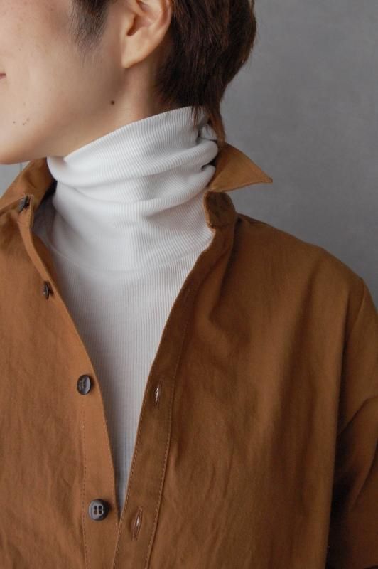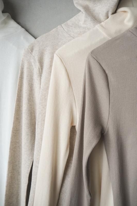インナーとして活躍する、薄手コットン素材のテレコタートルです。