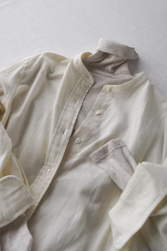 真冬にはウールのタートルの中に重ねると、風の侵入を防ぎ、より防寒性が高くなります。