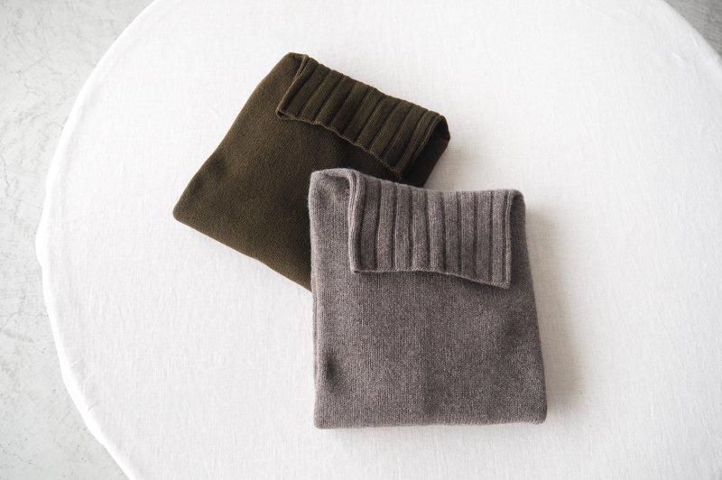 カシミヤ オフタートルネックニット(オリーブ・ライトブラウン)