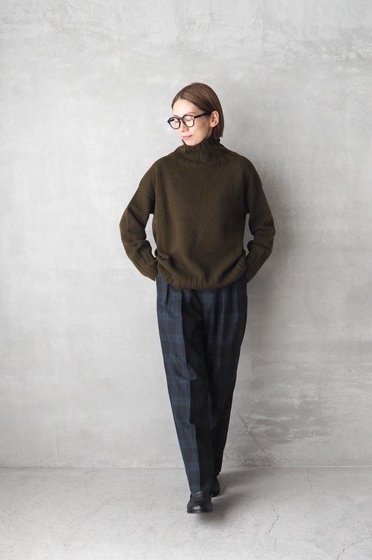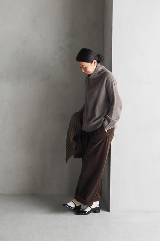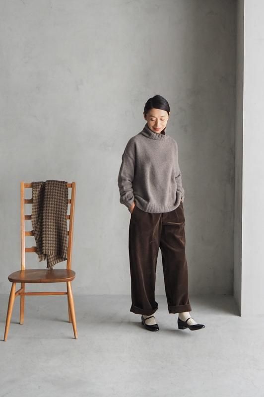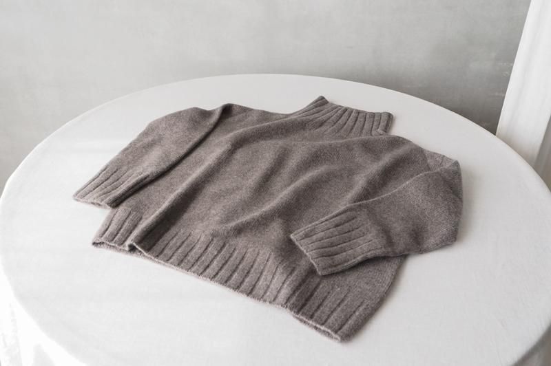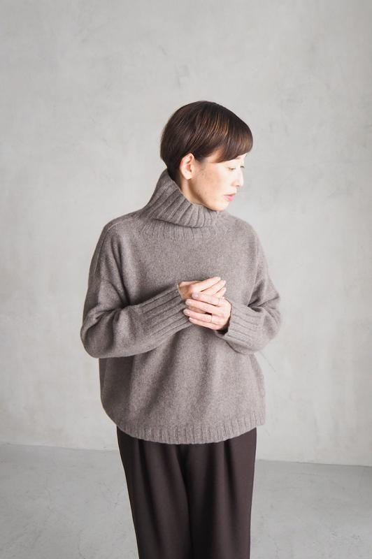 首元にふんわりと沿うオフタートルのデザイン、肩回りはドロップショルダーでノーストレスな着心地が魅力です。