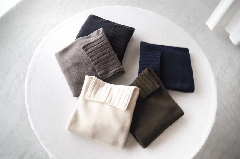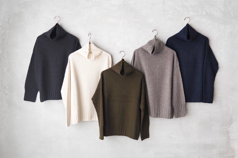 優しく体を包み込んでくれる、カシミヤ100%のオフタートルネックニットです。