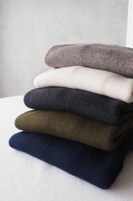 ミドルゲージで程よい厚さのカシミヤニットはあたたかく、とても軽やか。