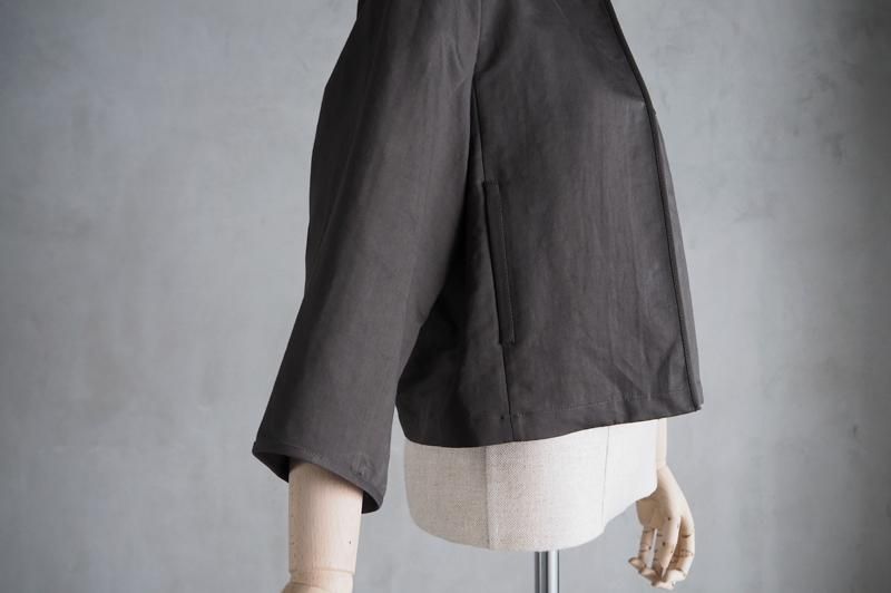 やや短めの着丈でコンパクトな形ながらゆったりとした袖幅で、楽な着心地です。