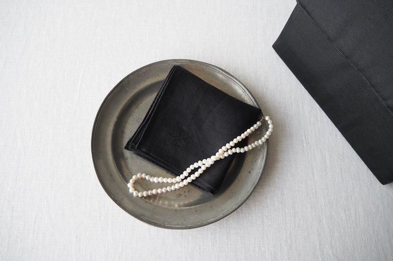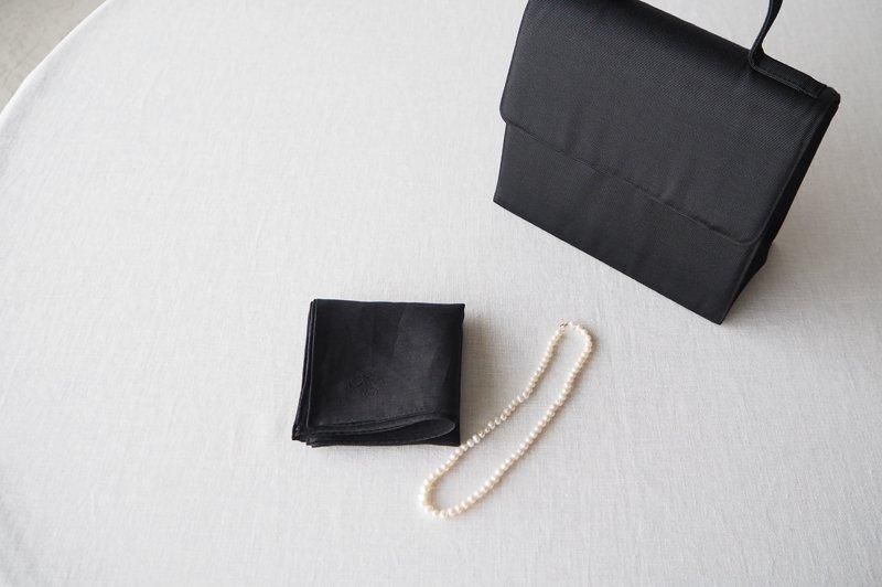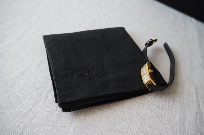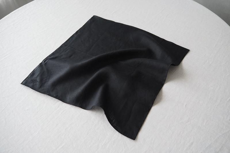 上質なリネン素材のハンカチーフに、フォーマルで使えるブラックが入荷しました。