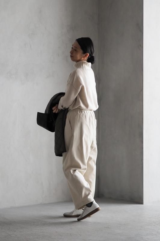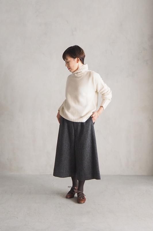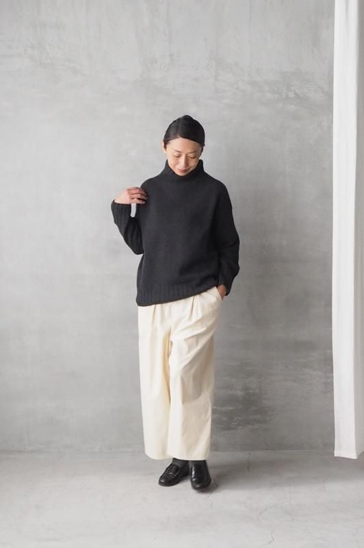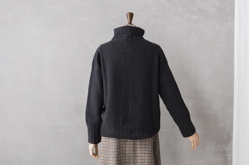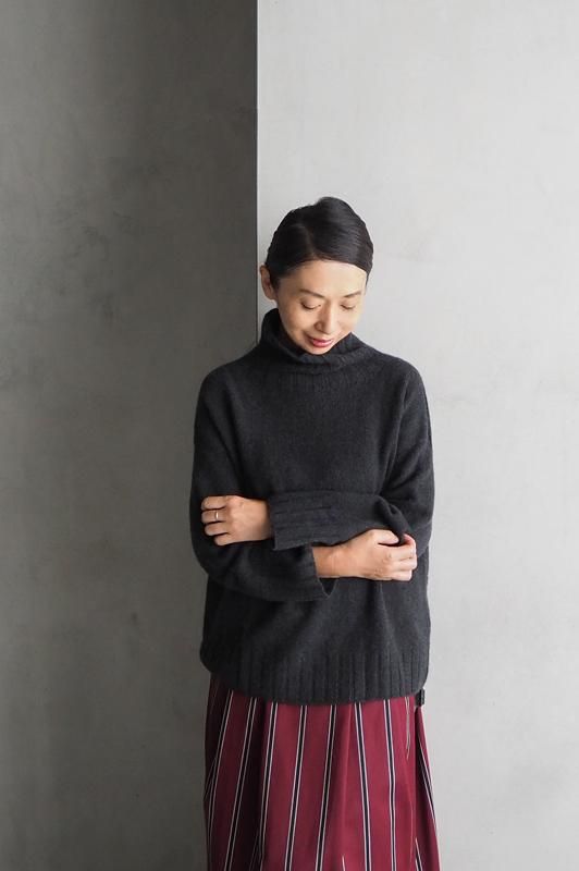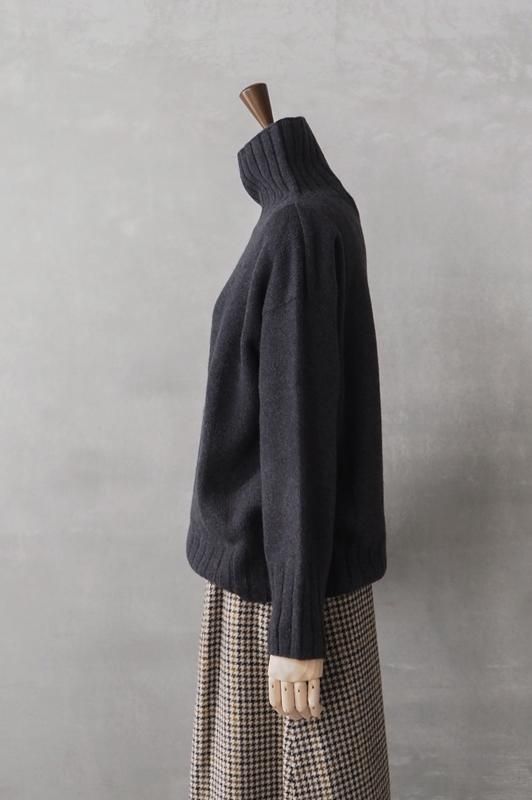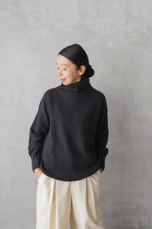 首元にふんわりと沿うオフタートルのデザイン、肩回りはドロップショルダーでノーストレスな着心地が魅力です。