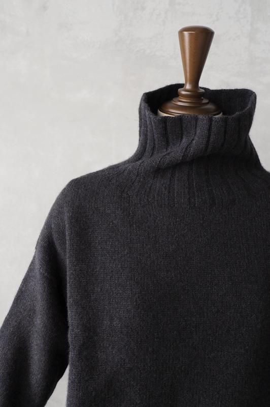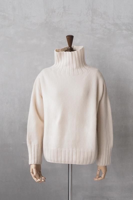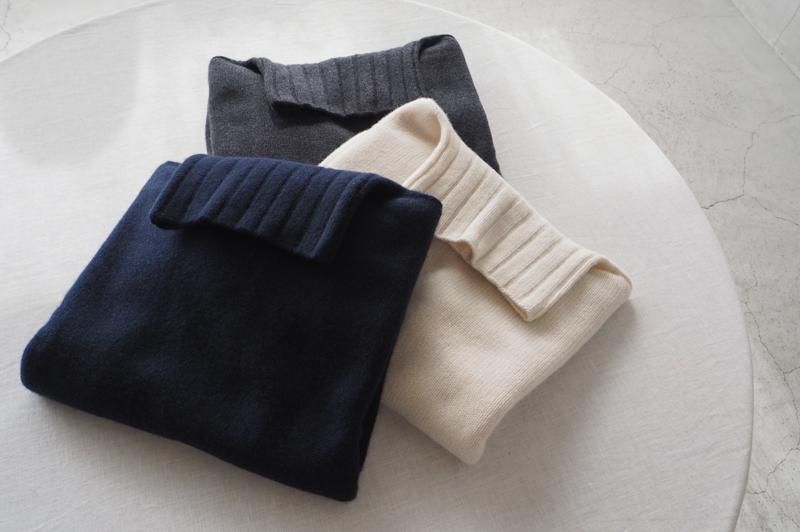 優しく体を包み込んでくれる、カシミヤ100%のオフタートルネックニットです。