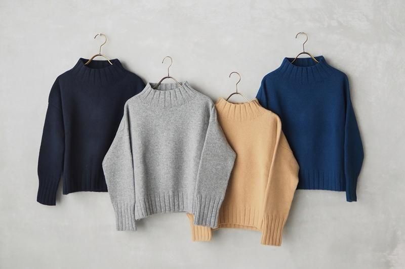 ふっくらとエアリーな質感で体をやさしく包み込んでくれるモックネックセーターです。