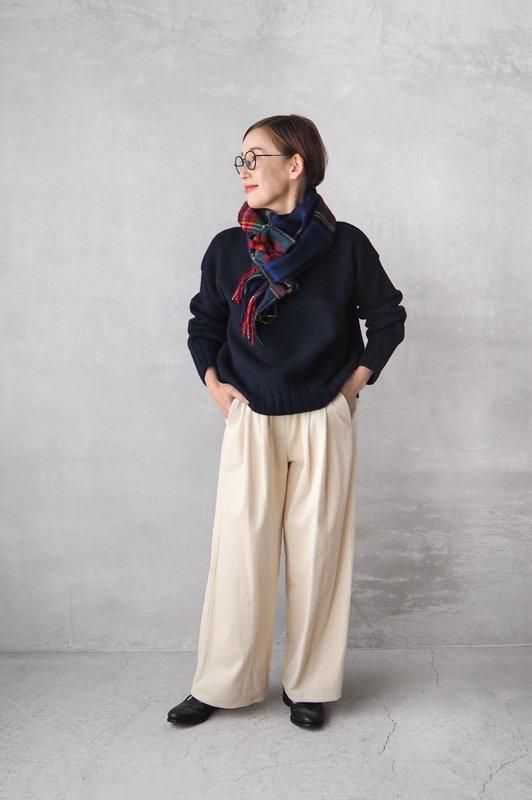 温もり感のあるシンプルなニットは、冬のコーディネートに活躍します。