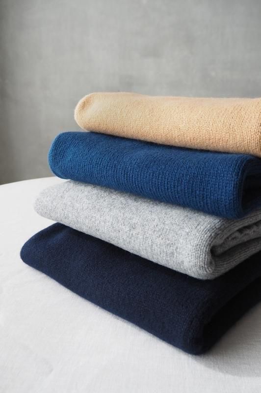 カラーはネイビー・グレー・キャメル・ダークブルーの4色、サイズは34・36の2種類です。