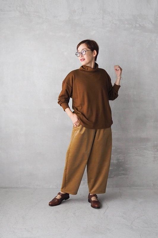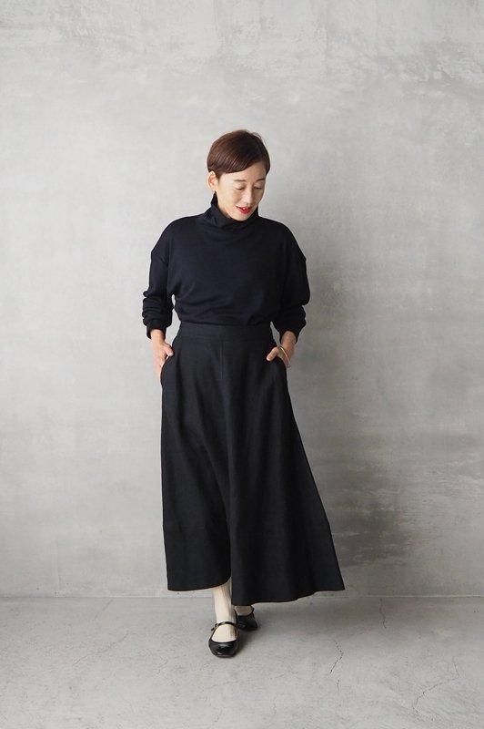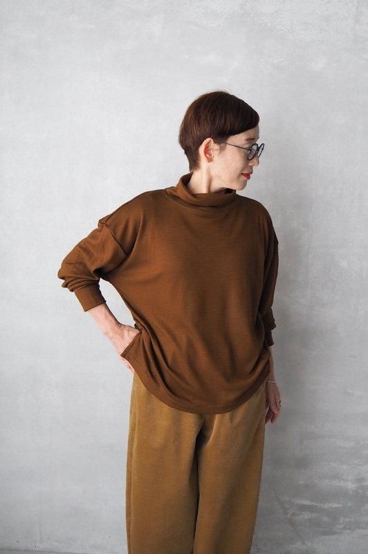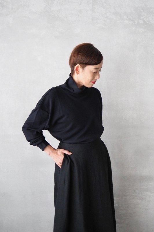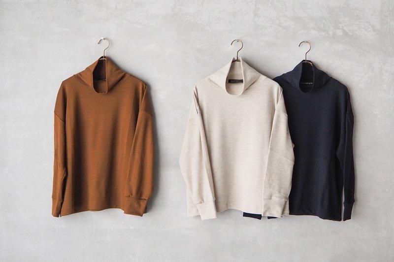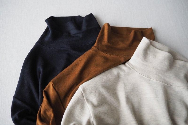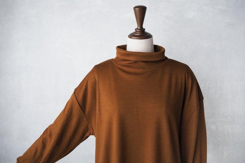 艶やかで滑らかな肌触りの、スムースウールジャージーを使用したオフタートルネックのカットソーです。