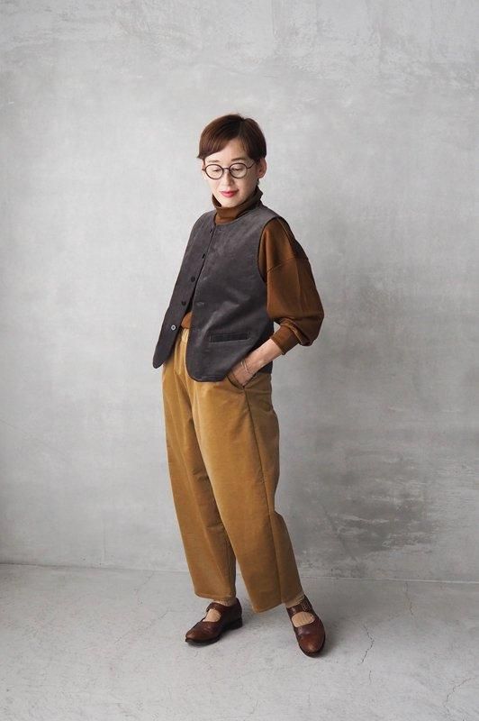 一枚でもコーディネートが完成するウール素材の上品なカットソーは、秋冬のレイヤードスタイルにおすすめ。