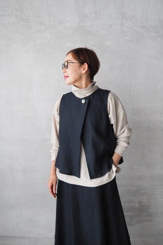 ネック部分は折り返すとボトルネックのように着ることができます。