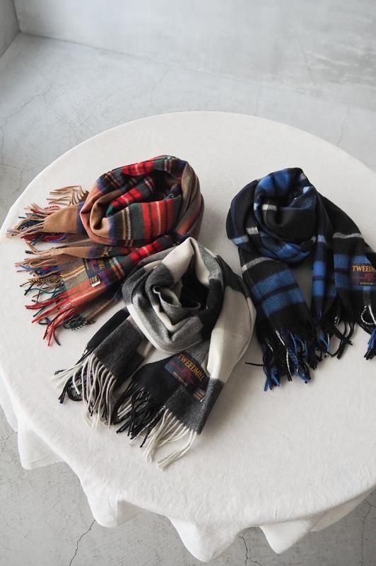 「TWEEDMILL(ツイードミル)」チェック ラムズウールストール。
