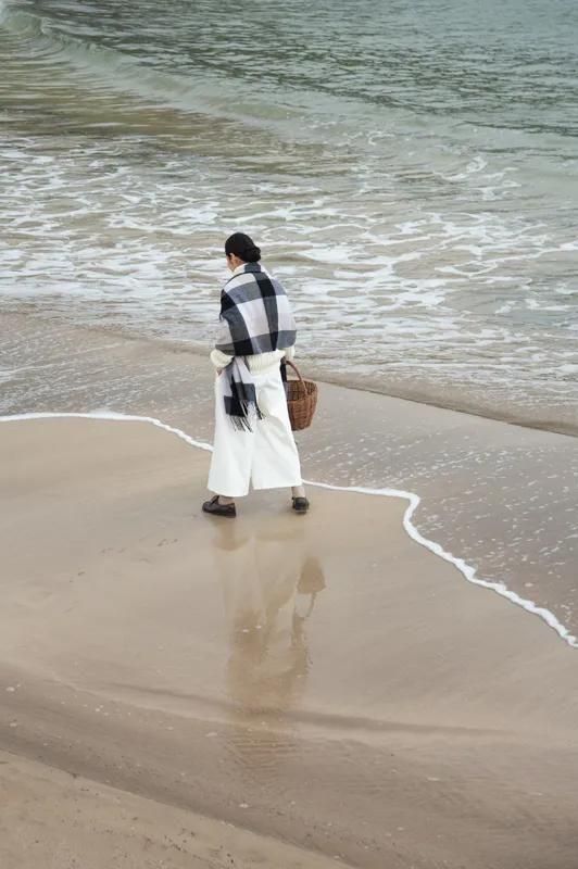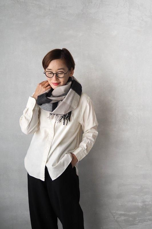 大判のストールは顔周りにふんわりと巻いたり、コート代わりに肩にかけても程よいボリューム感で巻き方のアレンジも自在です。