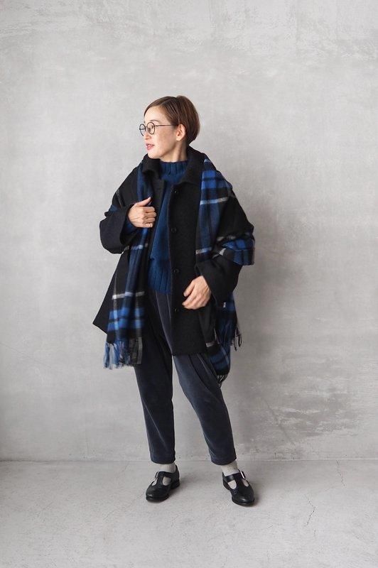 寒い季節のコーディネートを引き立ててくれる、あたたかなチェック柄のストールです。