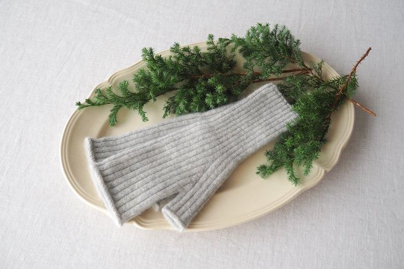 指先が覗くフィンガーレスタイプのあたたかなニットグローブです。