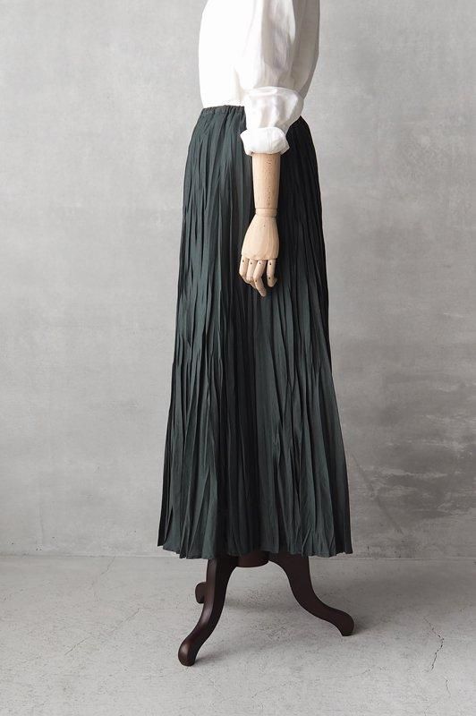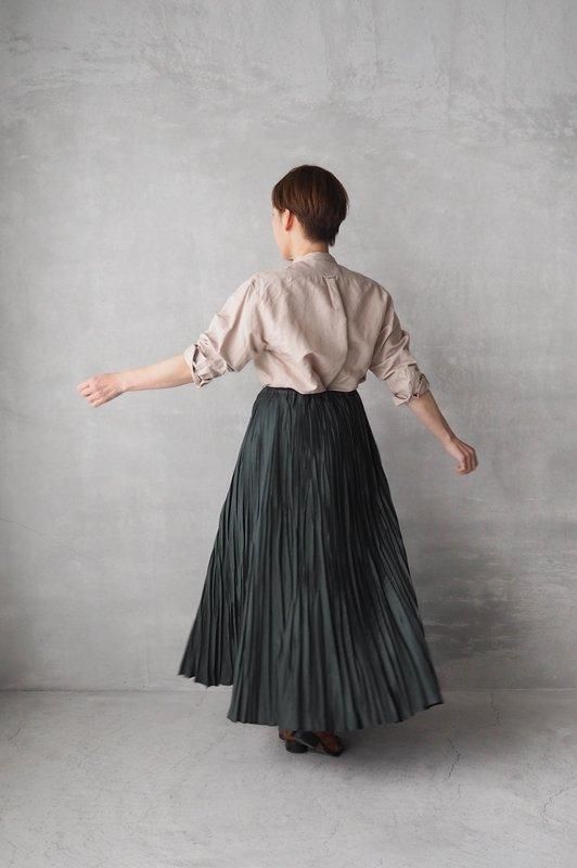新しい技術「MAX PLEATS」加工により天然素材の持つナチュラルな風合いそのままに、美しい細やかなプリーツを施した一枚です。