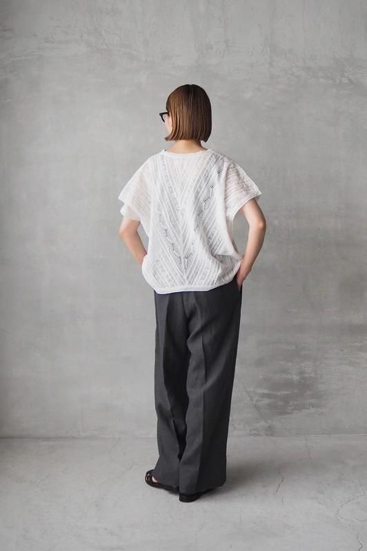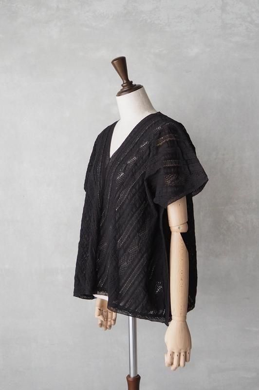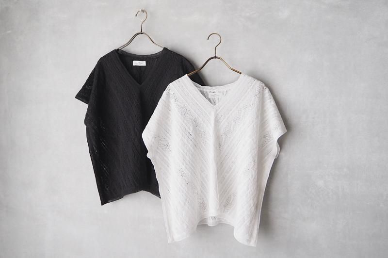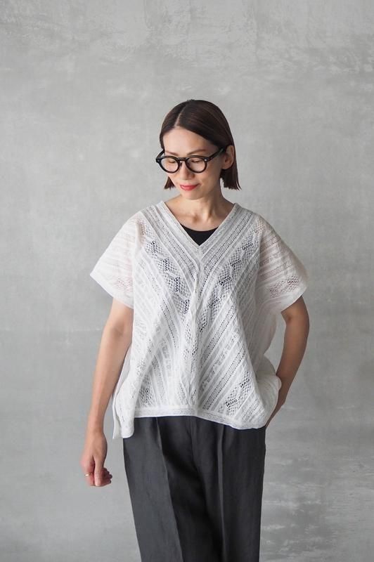 コットンレースを全面にあしらった、華やかで涼やかな着心地のポンチョブラウスです。