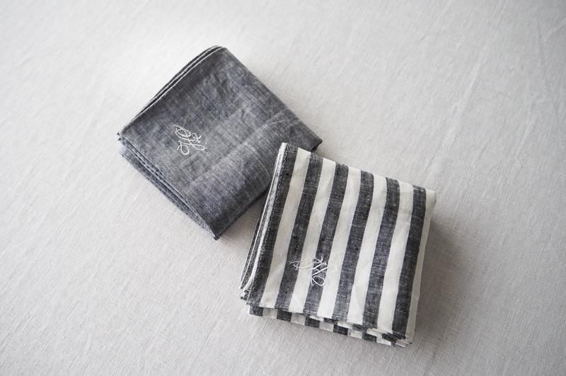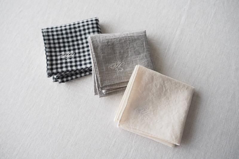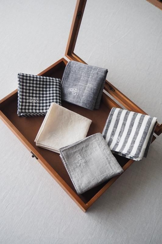 「HAND ROOM WOMENS」の頭文字「H」の刺繍が入ったリネンハンカチーフに、新色の色柄が入荷しました。