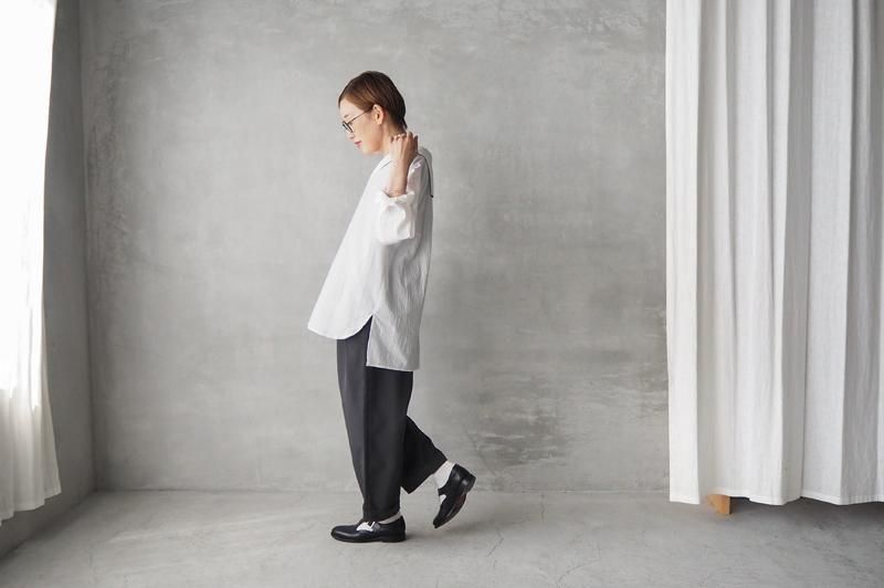 素材には涼やかな着心地の、キャッチワッシャーシワ加工が施された薄手のコットン生地が使われています。