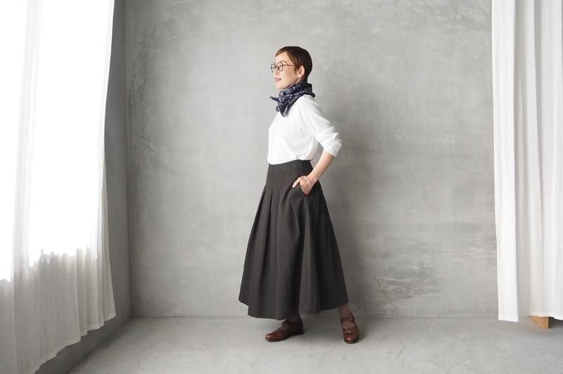 「HAVERSACK(ハバーサック)」墨染ツイル タックスカート。