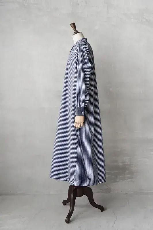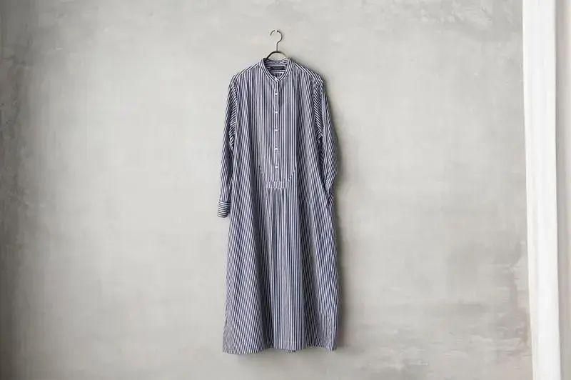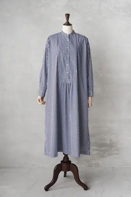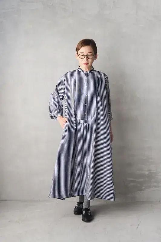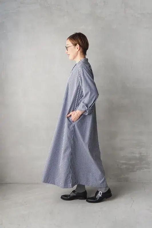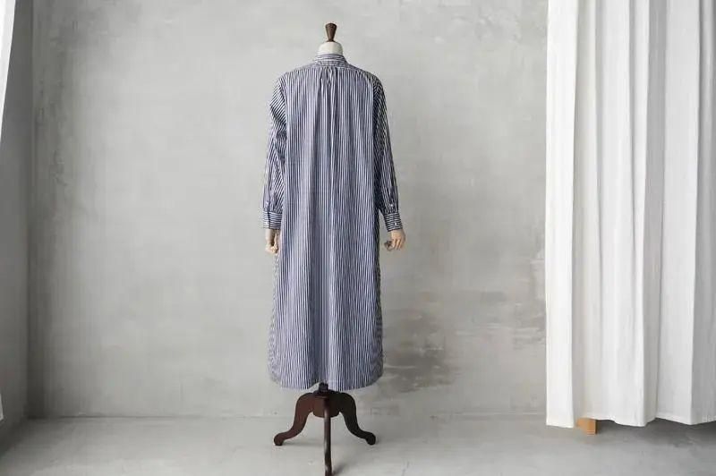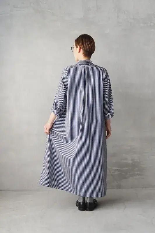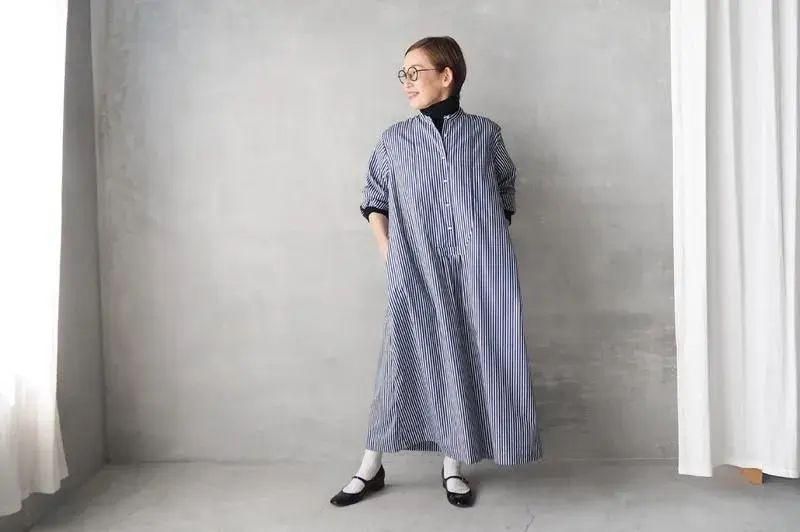 「HAND ROOM WOMENS(ハンドルームウィメンズ)」クラシックフロントワンピース(ネイビーストライプ)。