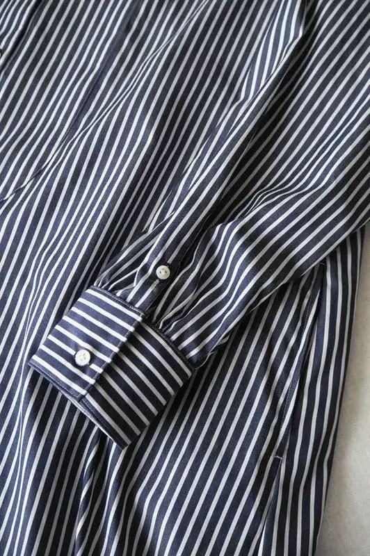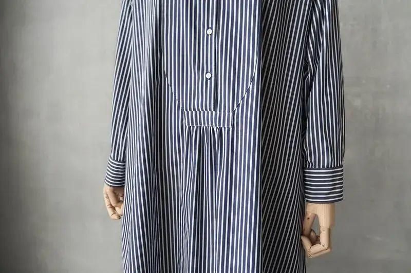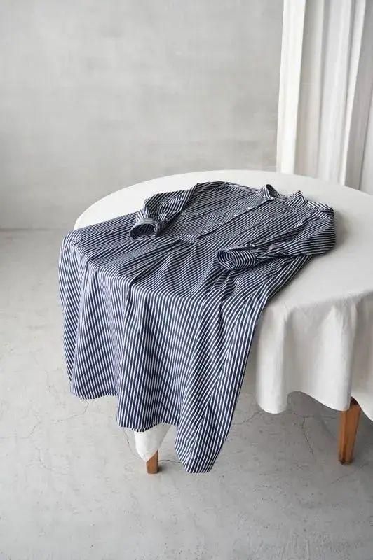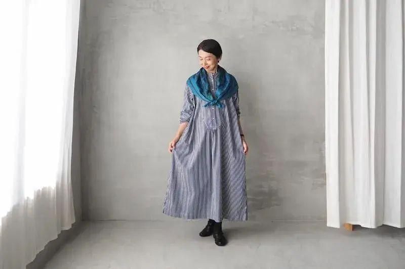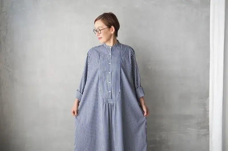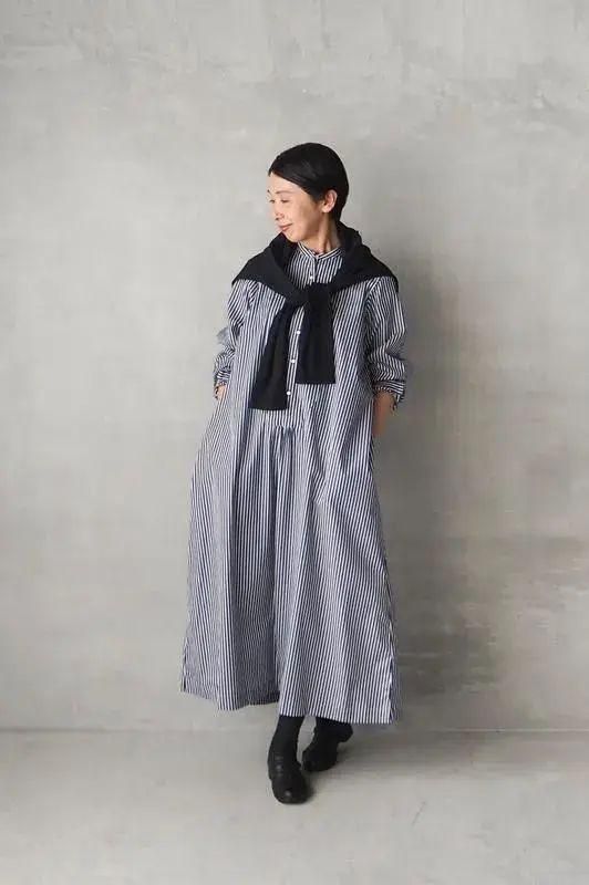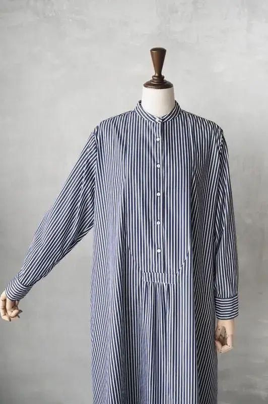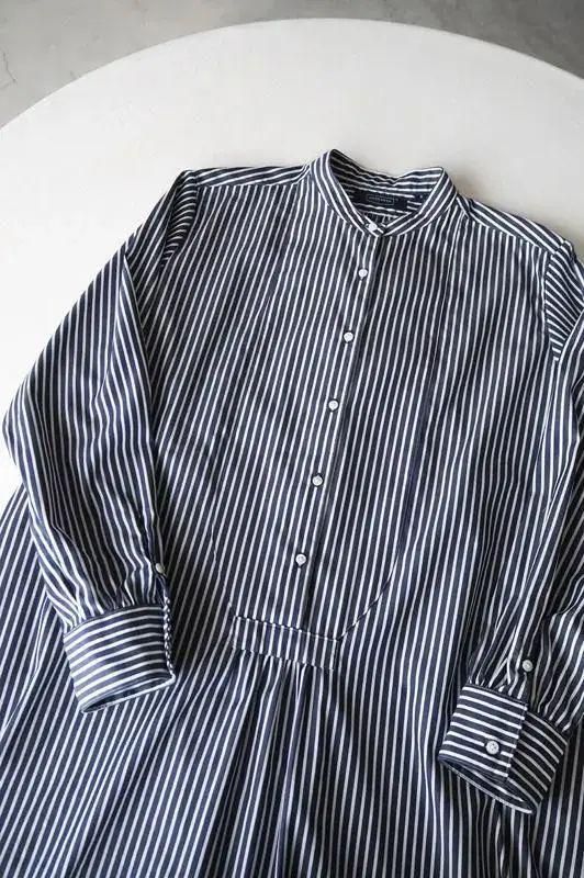 「HAND ROOM WOMENS(ハンドルームウィメンズ)」クラシックフロントワンピース(ネイビーストライプ)。