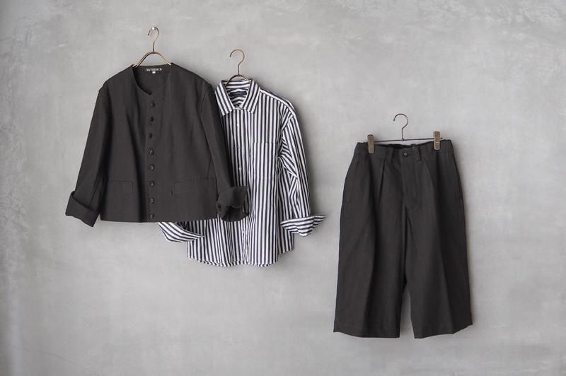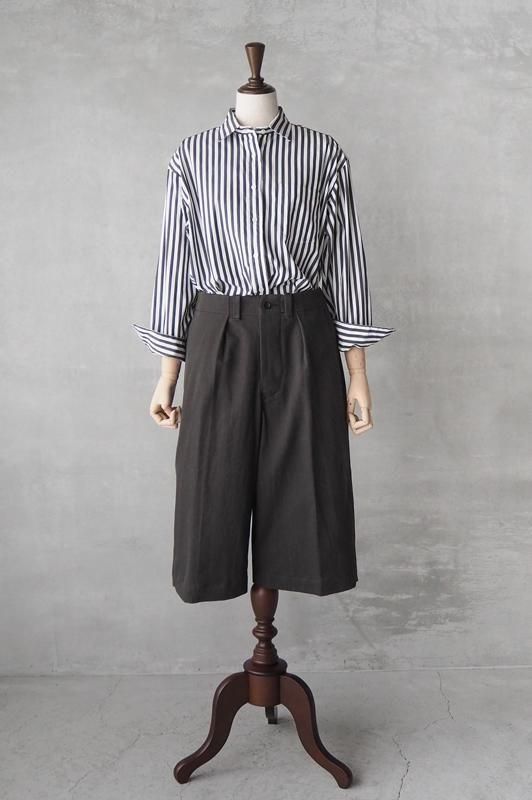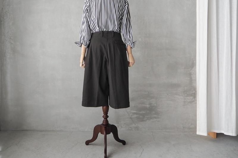 秋冬のすっきりとした着こなしが叶う、大人の方におすすめしたい墨染ツイルハーフパンツです。
