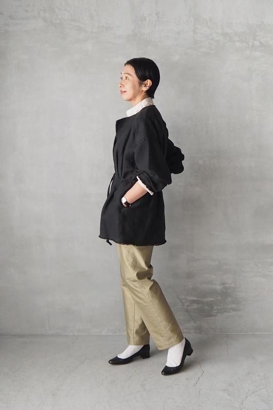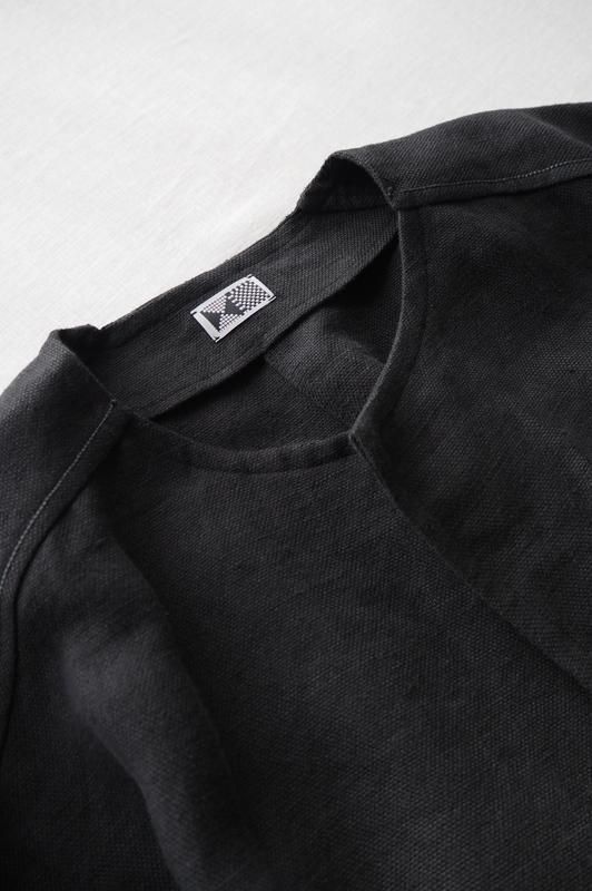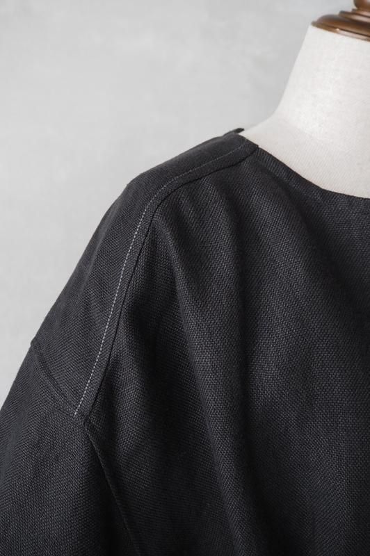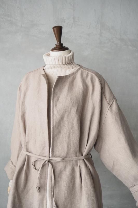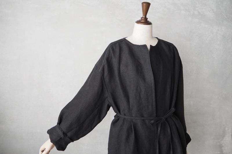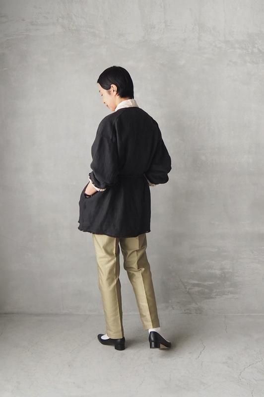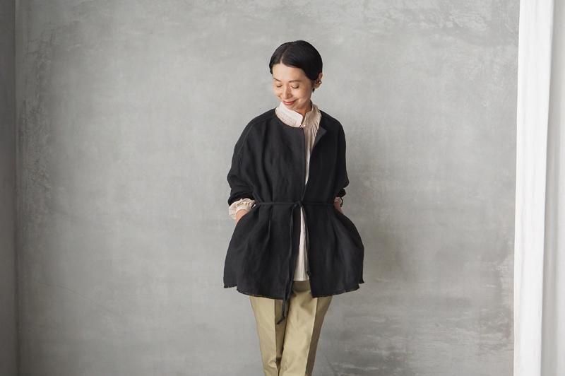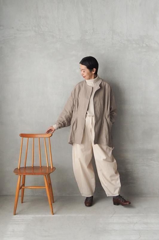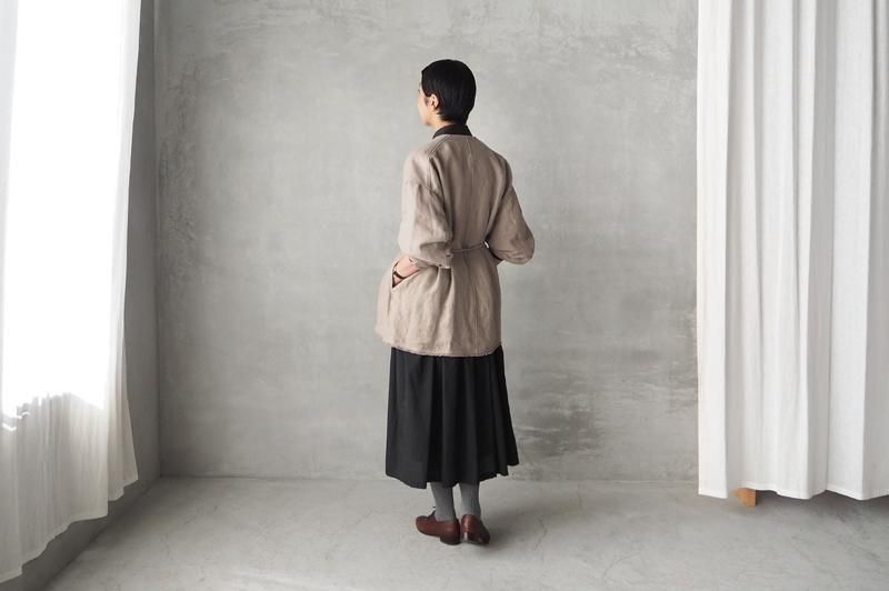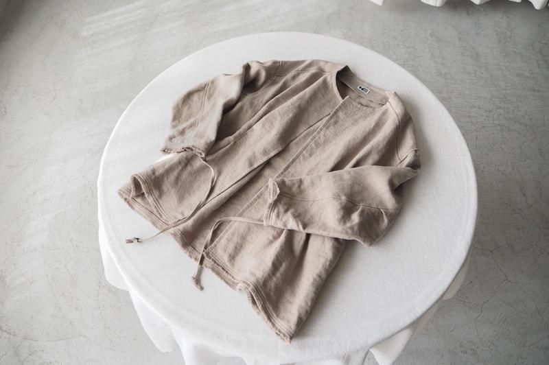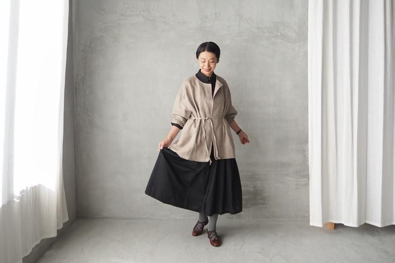 素材には太さにムラのある手紡ぎ風のリネン糸を織り上げた表情のある生地が使われています。