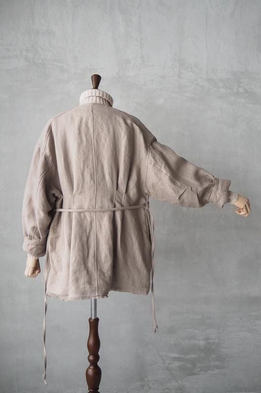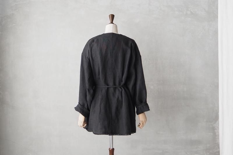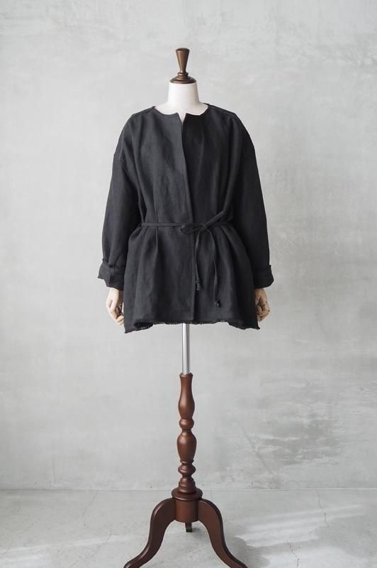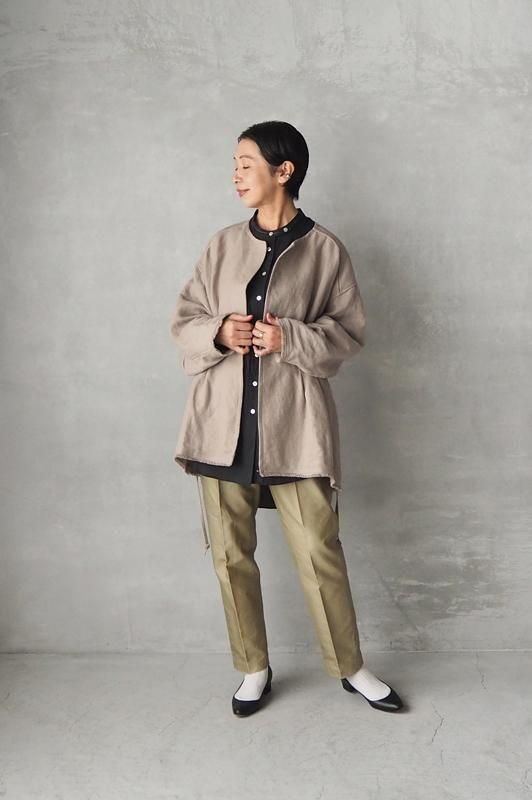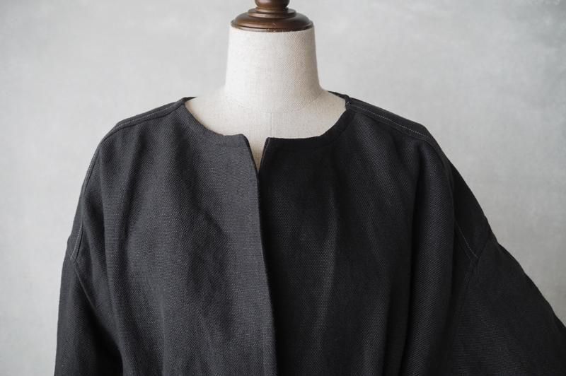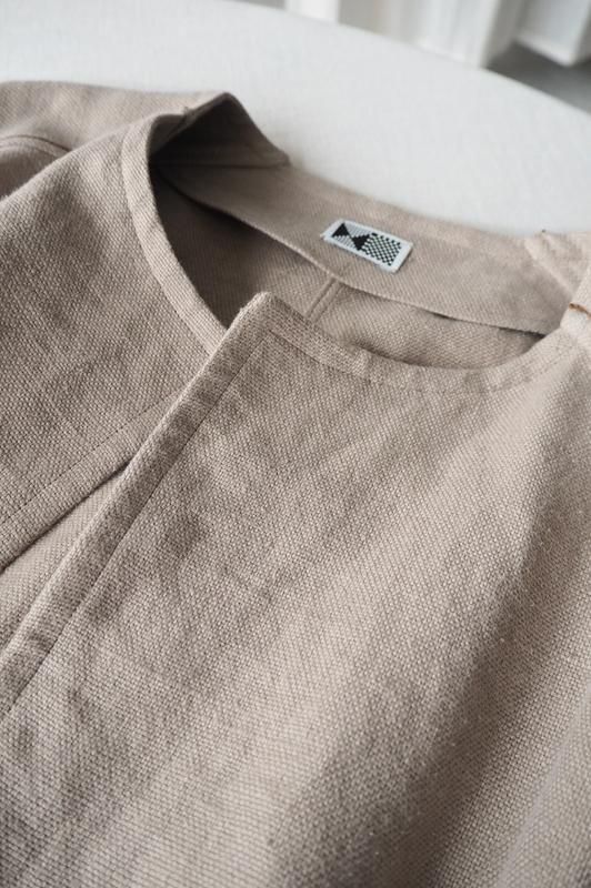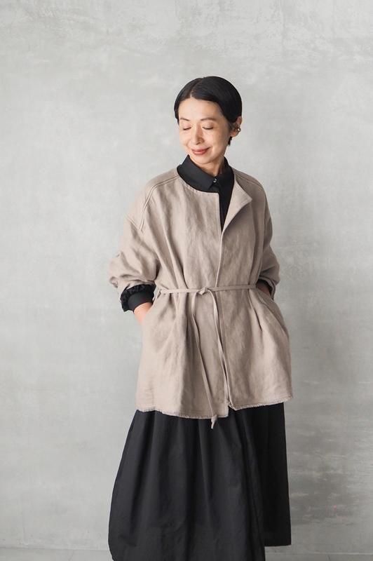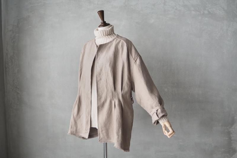 手紡のような風合いが魅力のノーカラーアンコンジャケットです。