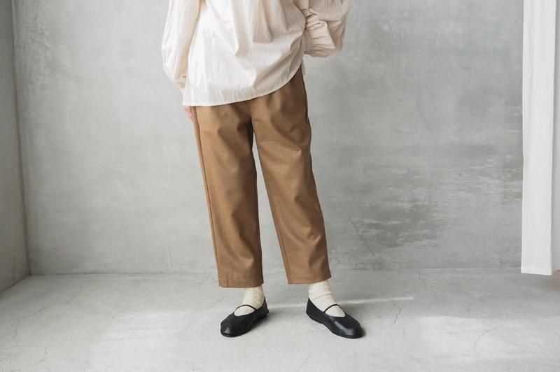 「maison de soil(メゾンドソイル)」フランネル イージーテーパードパンツ 〈WOOL FLANNEL EASY TAPERED PANTS〉。