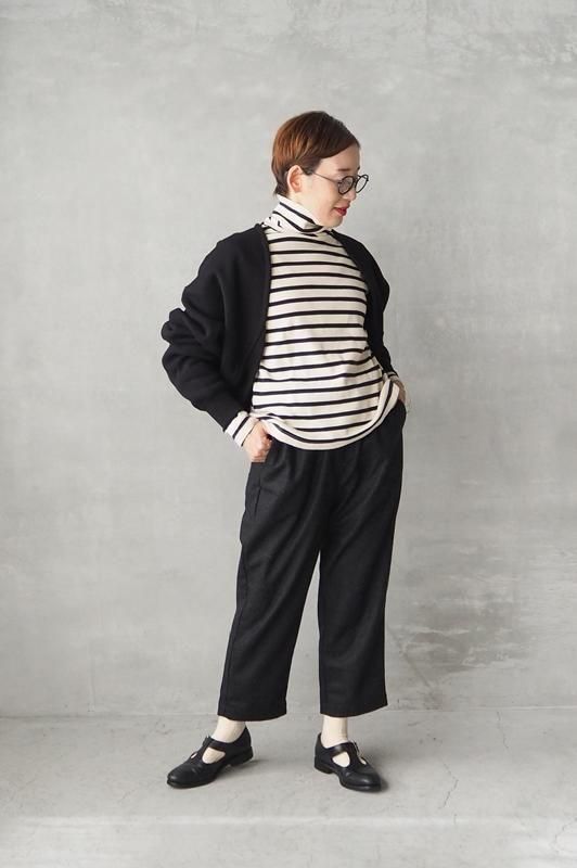 くるぶしが覗く軽やかなテーパードシルエットで、秋冬のボリューム感のあるコーディネートをすっきりと見せてくれる便利なボトムス。