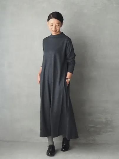 一枚で着ても素敵ですが、ジャケットやカーディガン、コートなどをプラスして秋冬の重ね着を楽しむことができます。