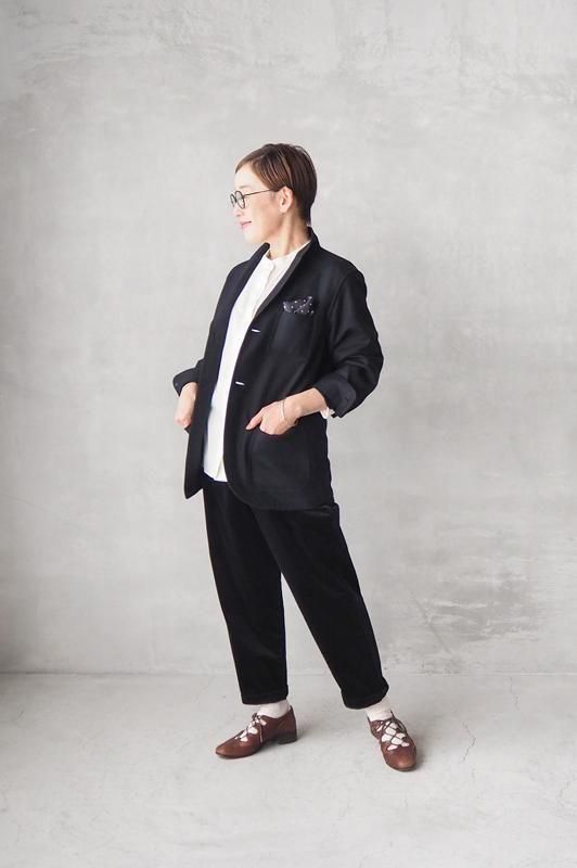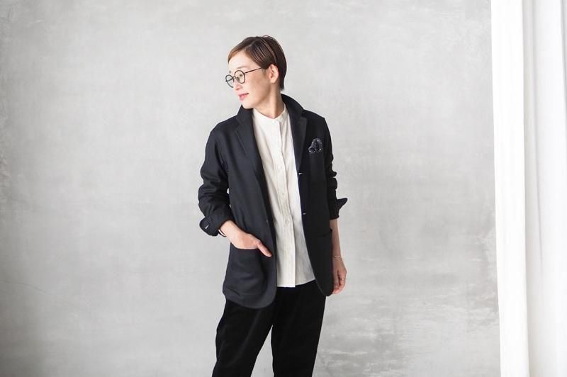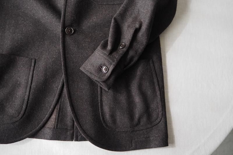フロント裾は着用時のバランスを考慮し丸みを持たせた上品なカッティング、袖口はカフス、バックはセンターベント仕様です。